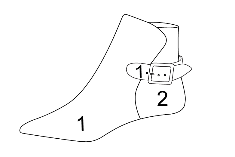 Women's dark brown elegant ankle boots, with buckles at the back. Square toe. Flat flare heels - Top view