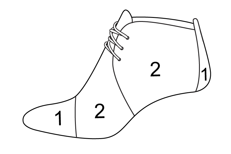 Gloss black and egg shell beige elegant ankle boots, with laces at the front. Round toe. High kitten heels.