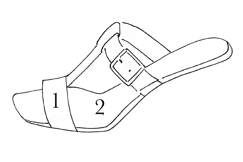Women's gold elegant mule sandals. Square toe. High wedge heels - Top view