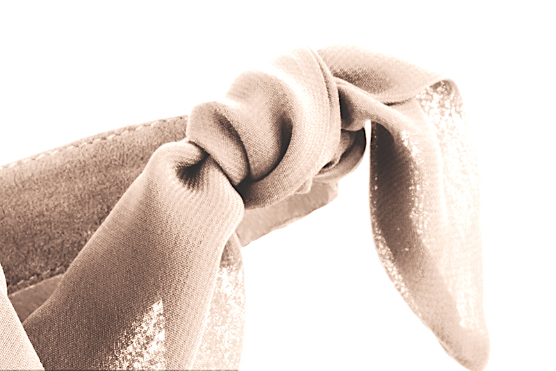 Gold and powder pink open back sandals, with a scarf around the ankle.